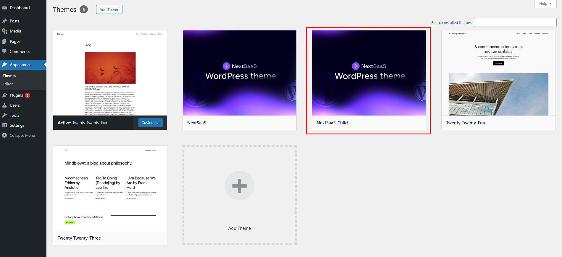 Downloading and Installing NextSaaS Child Theme#